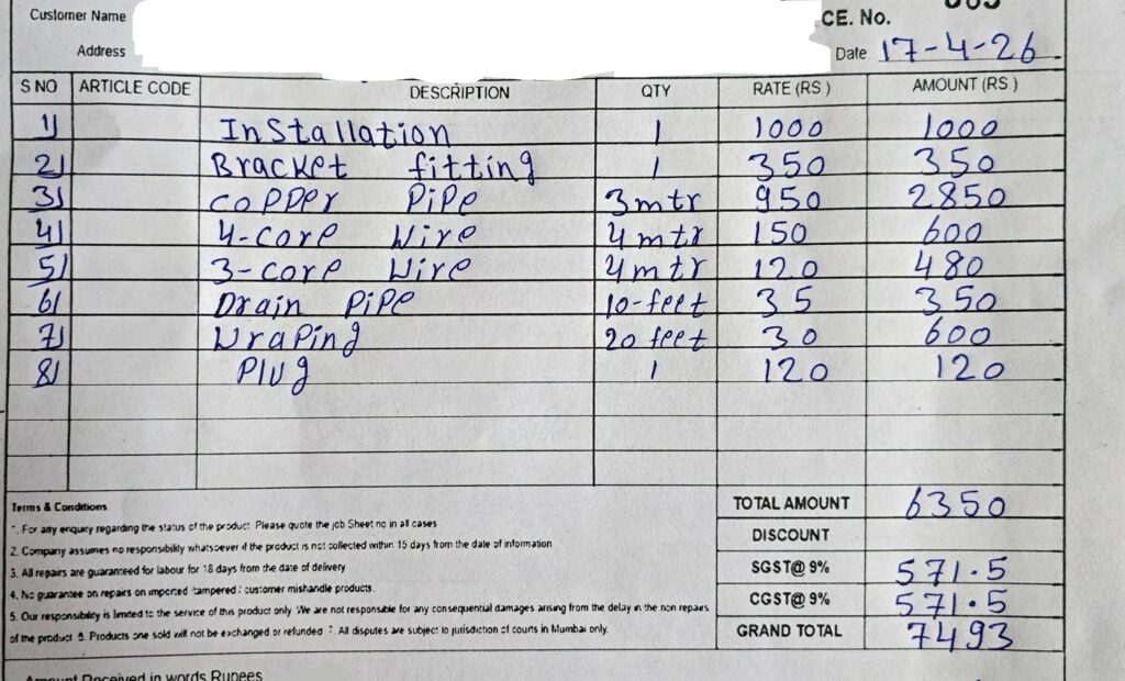 The listed AC price is often only the beginning. By the time installation is finished, the buyer may also be dealing with extra copper pipe, outdoor-unit bracket charges, drilling or core cutting, drain-pipe additions, electrical work, stabilizer questions, and then the first electricity bill after usage starts.